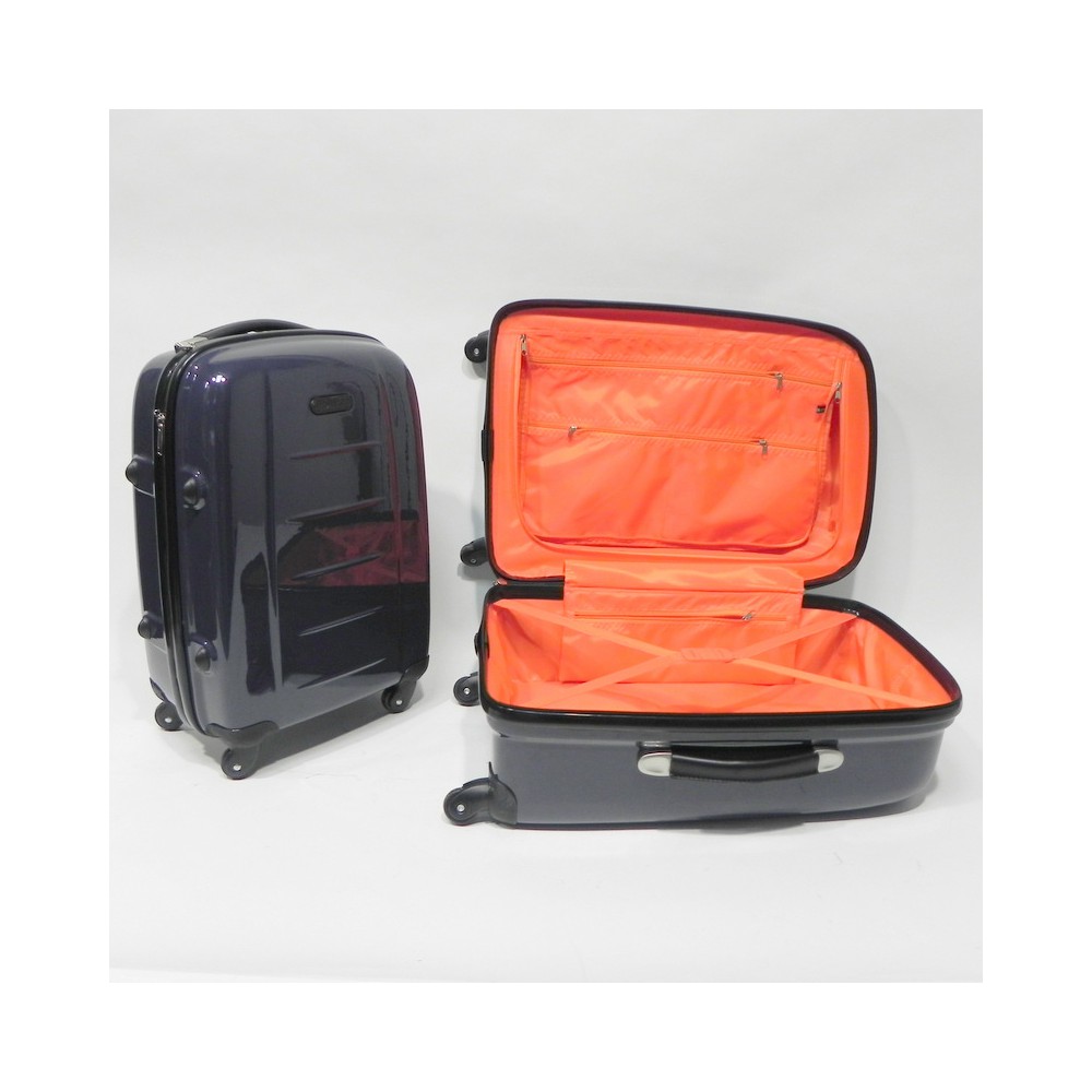 Material rígido.Dimensiones aprox. 58 x 38 x 26 cm. /48 x 32 x 22 cm.4 ruedas.Asa telescópica.Compartimentos interiores.Candado de seguridad