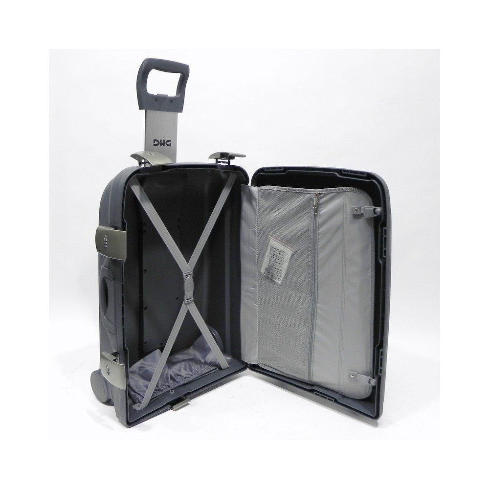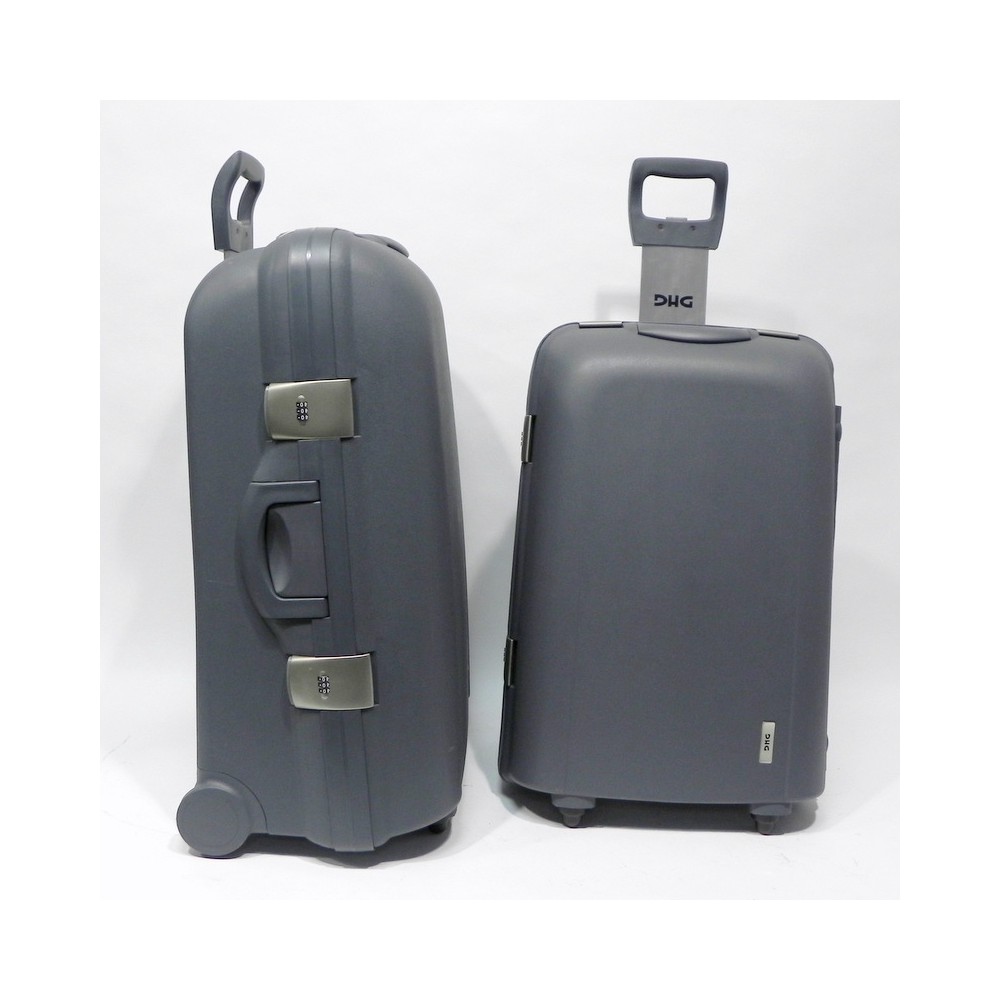 Material ABS. Dimensiones aprox. 80x52x35 cm / 70x45x32 cm. Ruedas. Asas telescópicas.5 puntos de cierre. Color gris oscuro.