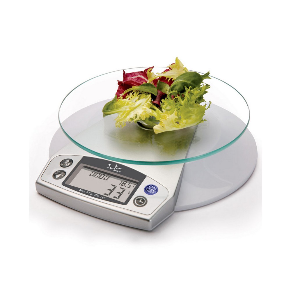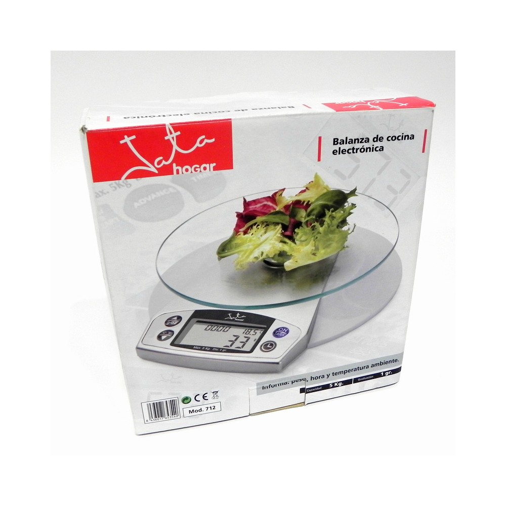 Capacidad 5 kg. / Graduación 1 gr. Informa: peso, hora, temperatura ambiente. Alta precisión electrónica. Innovador diseño en cristal de seguridad “temperit”, alta resistencia. Función de temporizador / alarma. Visor “LCD” de gran tamaño.Función de tara.Indicador de batería baja y de sobrepeso.Función de conversión kg. / oz.Funciona con 2 pilas “AAA” de 1,5 V. (Incluidas)