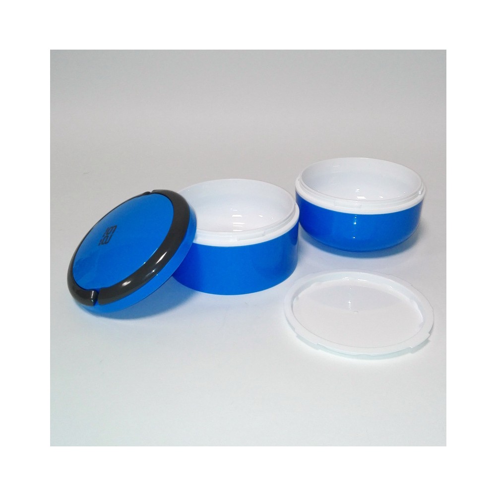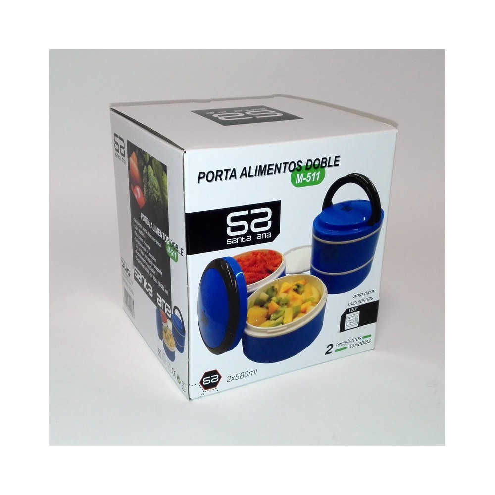 Recipiente porta alimentos doble. Apto para microondas. Libre de BPA. Tapa cierre roscada. Sin olores que se mezclan. Asa en tapa para fácil transporte. 2 contenedores apilables. Capacidad total 1,160 litros (2x580 ml)