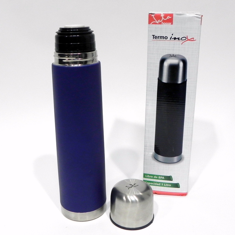 Doble pared de acero inoxidable de alta calidad: Libre de BPA. Gran resistencia a golpes y caídas. Ligero y fácil de transportar. Cierre hermético. Conserva las bebidas frías o calientes durante varias horas. Tapa rosca para utilizar como vaso. Vertedor apertura / cierre rápido mediante una simple presión del dedo. Capacidad 1 l. Color: azul