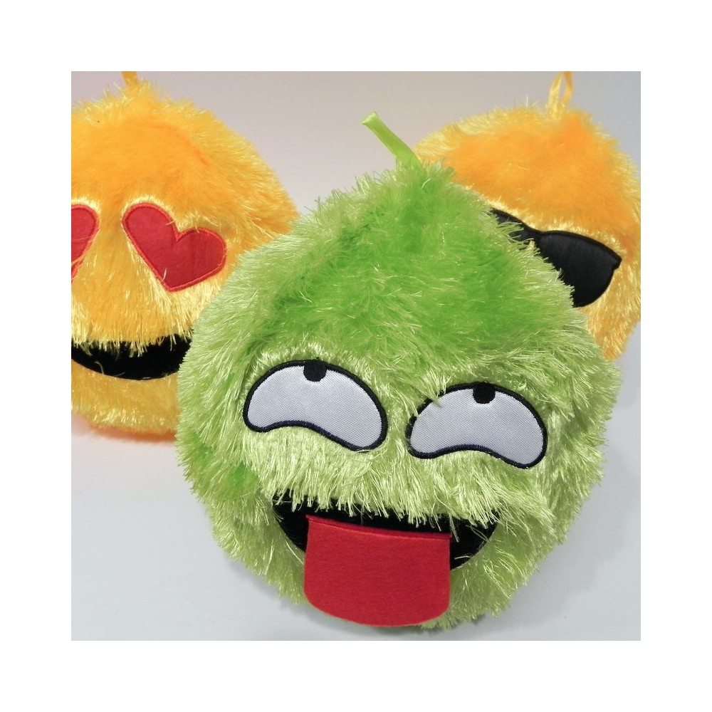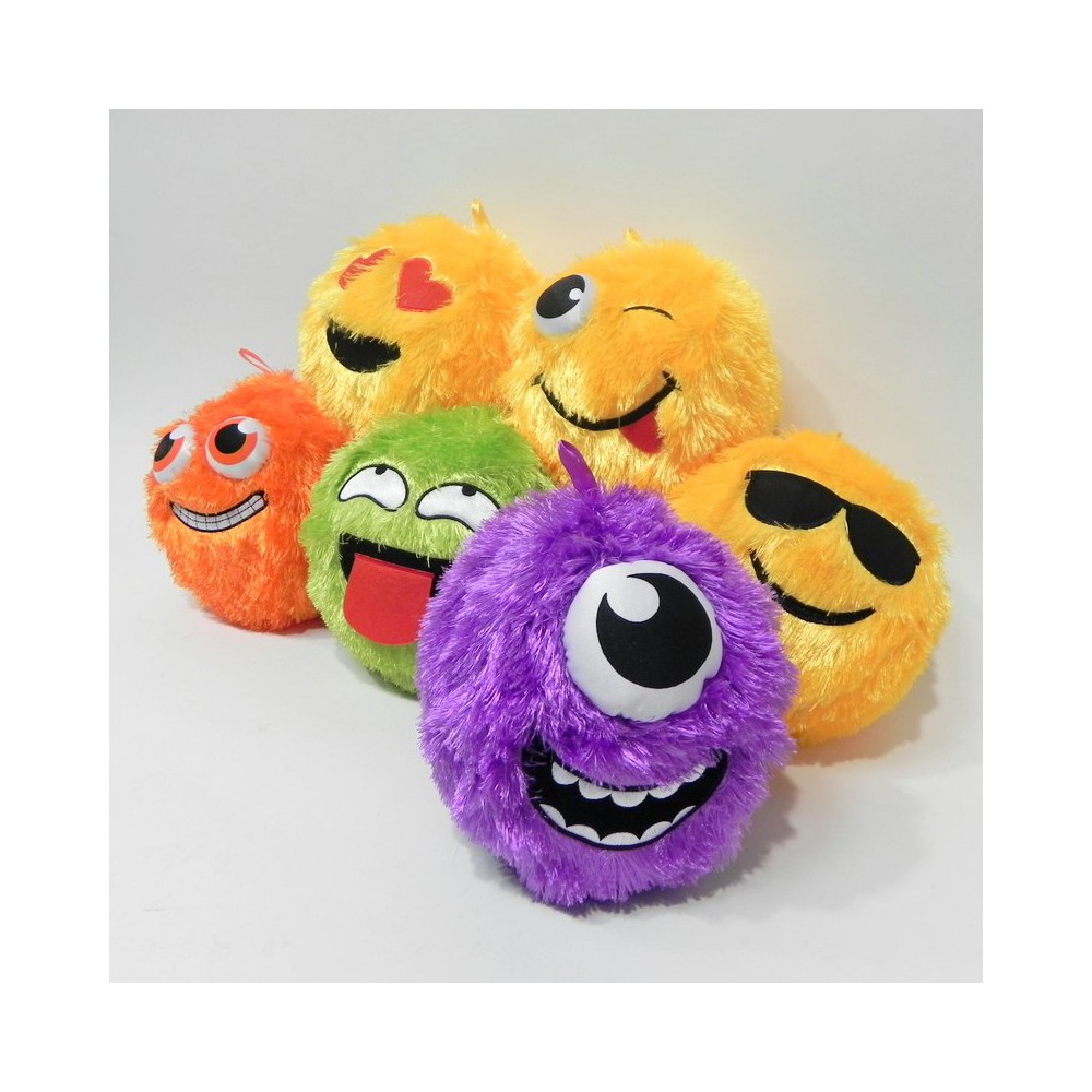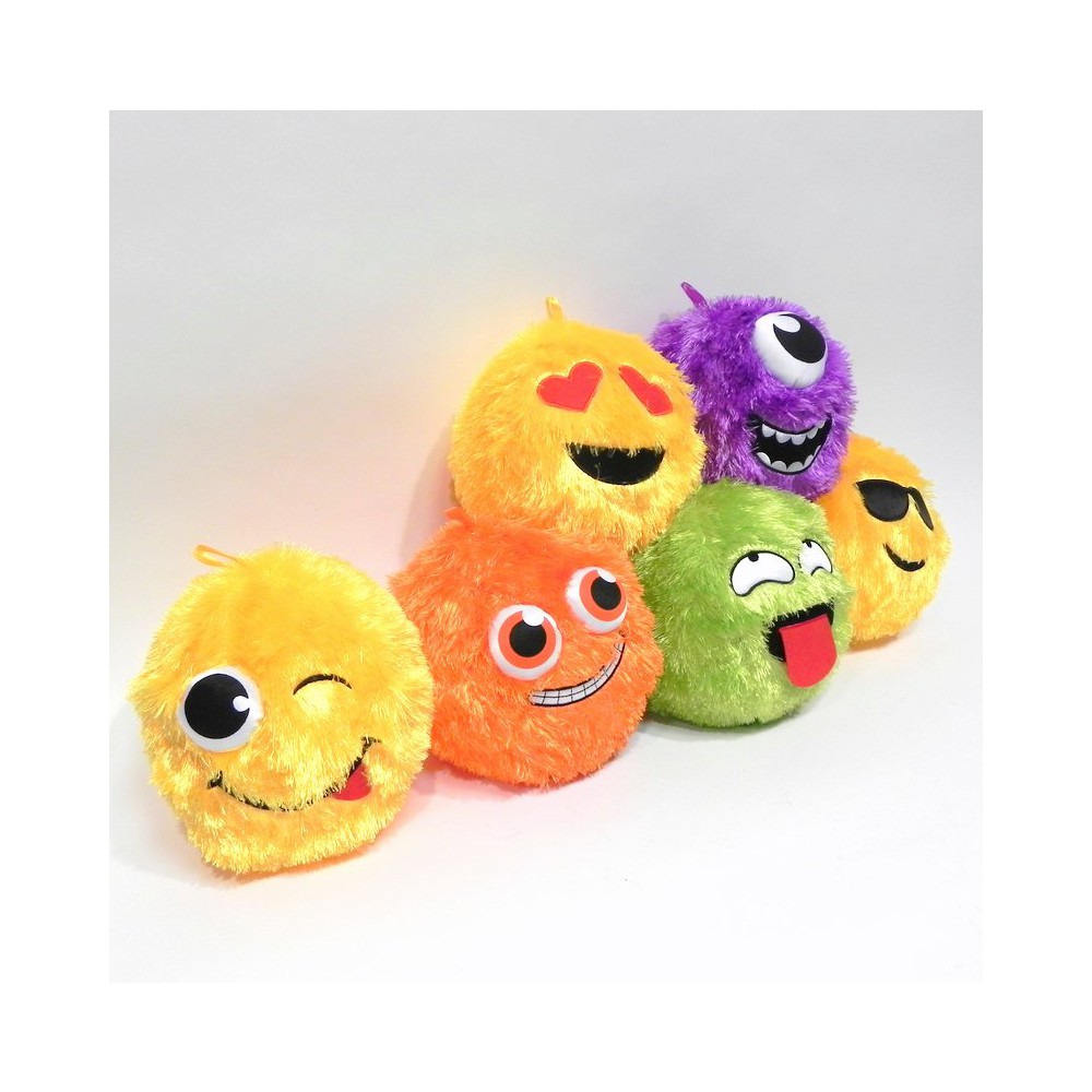 Pelota hinchable con tejido peludo, surtidas a color y con distintos gestos. Tamaño: 40 centímetros de diámetro.