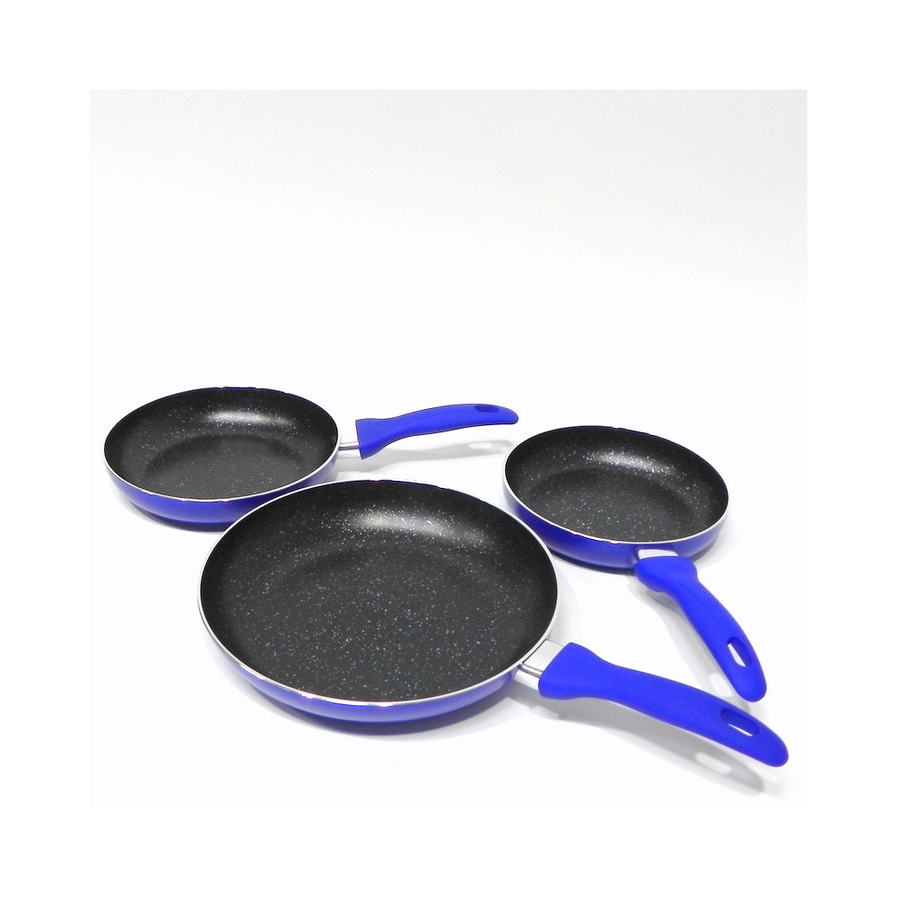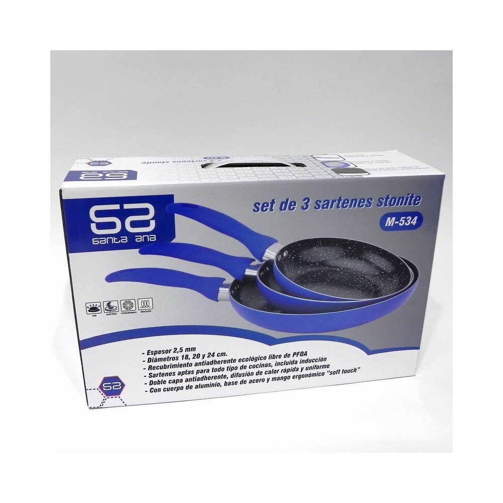 Espesor 2,5 cm. Diámetros 18, 20 y 24 cm. Recubrimiento ecológico cerámico libre de PFOA. Sartén apta para todo tipo de cocinas, incluida inducción. Doble capa antiadherente, difusión de calor rápida y uniforme. Con cuerpo de aluminio, base de acero y mango ergonómico de silicona.