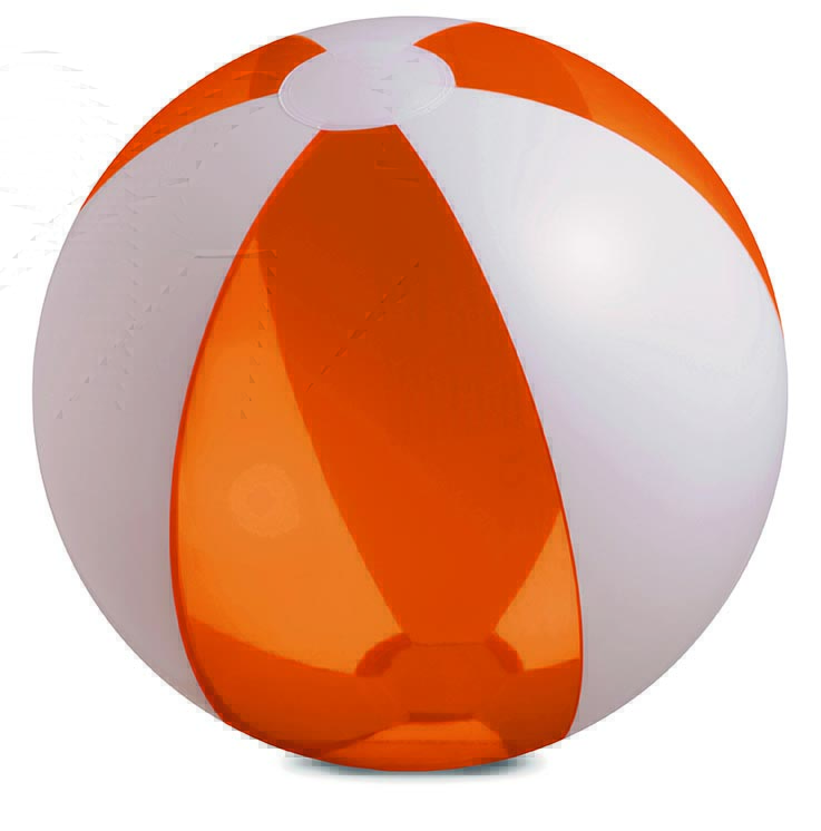 Pelota de playa hinchable con efecto transparente, diseño bicolor. Diámetro 24 cms hinchada.