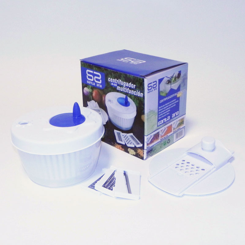 Fácil de usar, ideal para uso doméstico. Elimina en segundos el agua de los alimentos. Con accesorio contenedor y escurridor. Cuchillas intercambiables. Ralla, corta, pica, tritura...