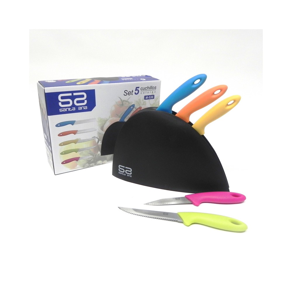 - Estuche compuesto por 5 cuchillos con soporte.