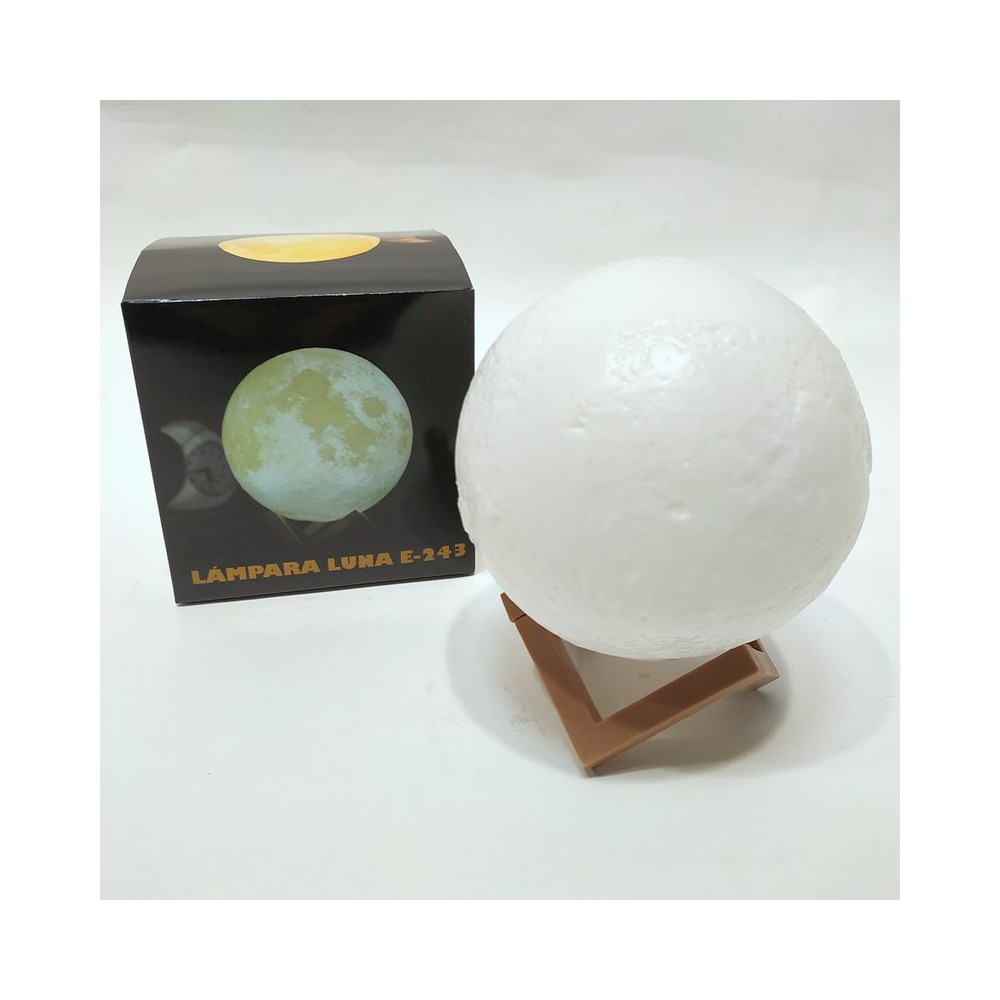 Lámpara luna llena 3D. Tamaño diámetro 12 cms. Con soporte. Funciona con 3 pilas AG13 incluidas.