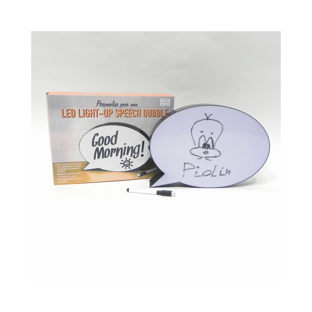 Pizarra luminosa con rotulador y borrador. Funciona con pilas o con el cable USB incluido.