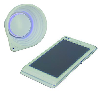 cargarlo. Dimensiones: 8,5 cm B × 8,5 cm A × 3,4 cm P. Material: plástico ABS, silicona.