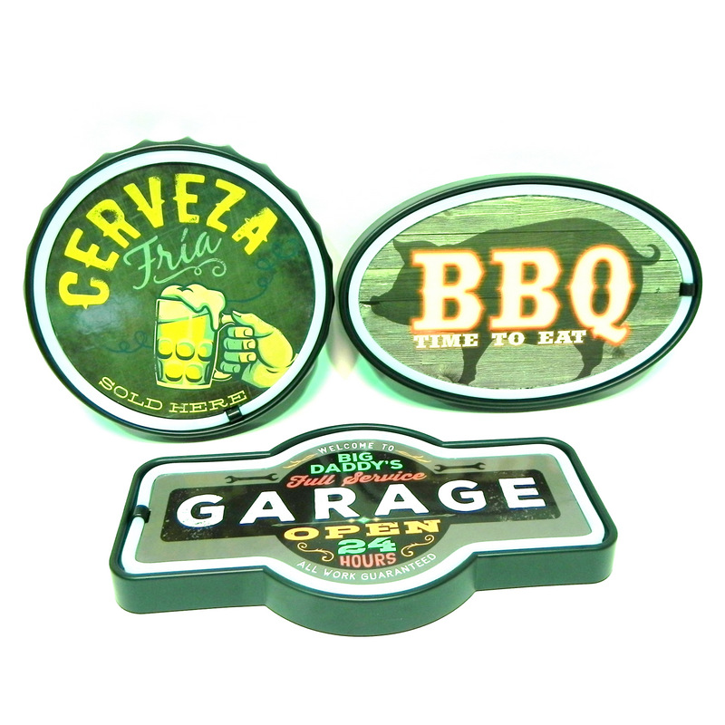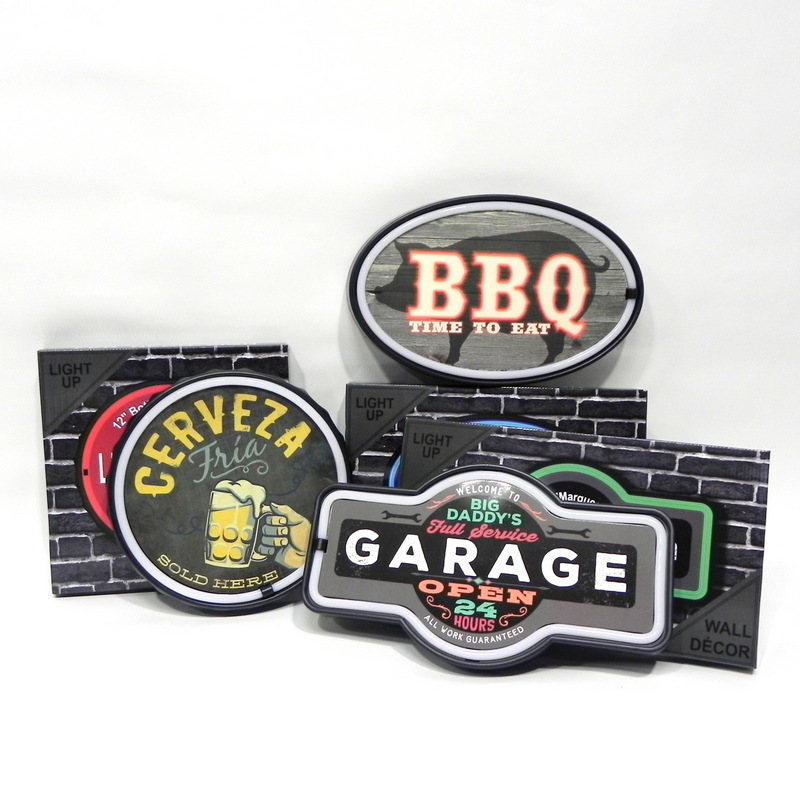 Carteles decorativos con luces de neón. Modelos, formas y tamaños surtidos. Funcionamiento a pilas o con cable USB.