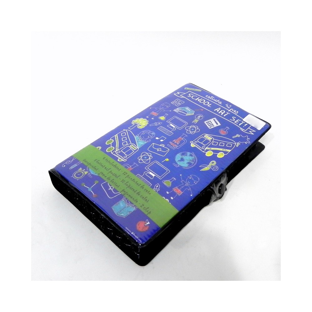 - Estuche escolar con amplia gama de pinturas y accesorios: