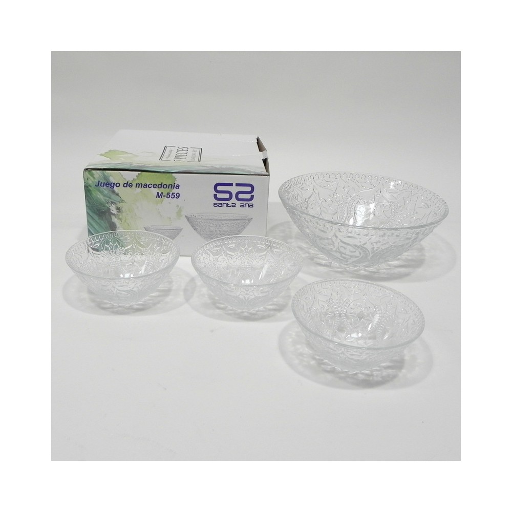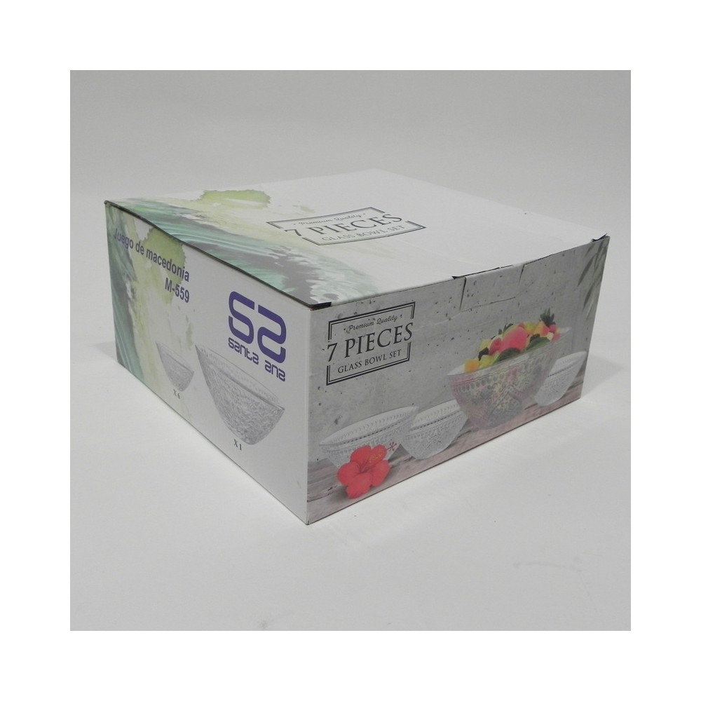 Juego de macedonia de cristal. Compuesto por un bowl grande y 6 pequeños. Marca Santa Ana.