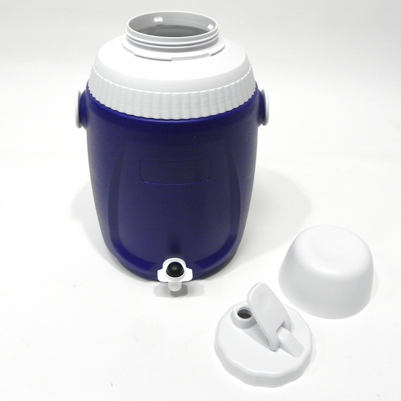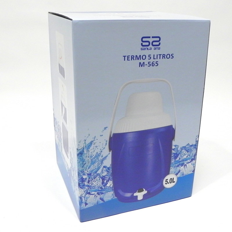 Termo de material plástico con dosificador. Capacidad para 5 litros. Amplia apertura superior y asa para facilitar su transporte. Marca Santa Ana.