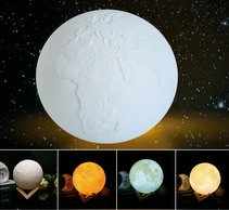 Lámpara 3D luna y tierra, modelos surtidos. Control táctil con 7 colores distintos. Diámetro 15cms. Batería recargable con cable de carga suministrado.