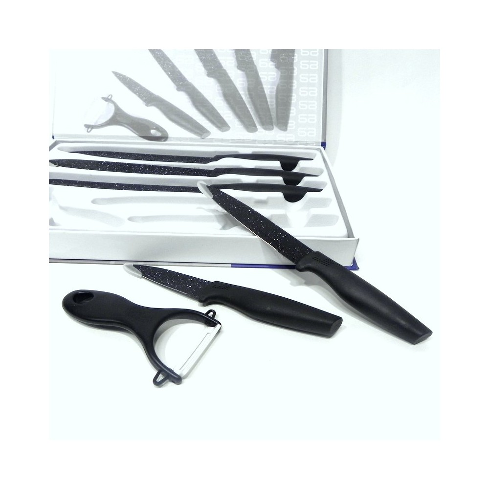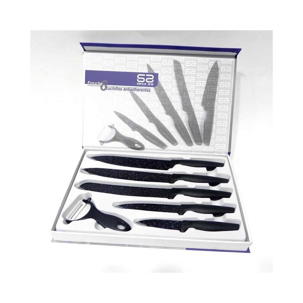 - PRÁCTICOS CUCHILLOS CON FILO ANTIADHERENTE PARA EL CORTE DIARIO DE FRUTAS, VERDURAS, CARNES O PESADOS.