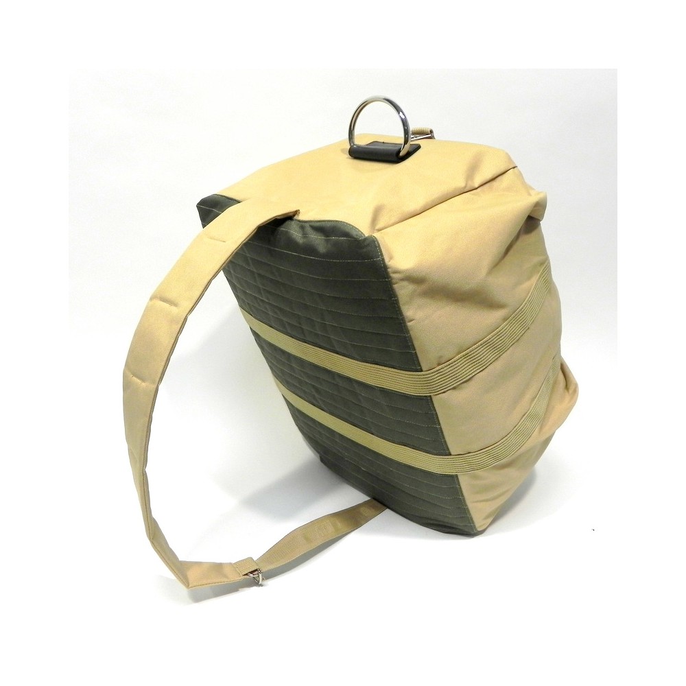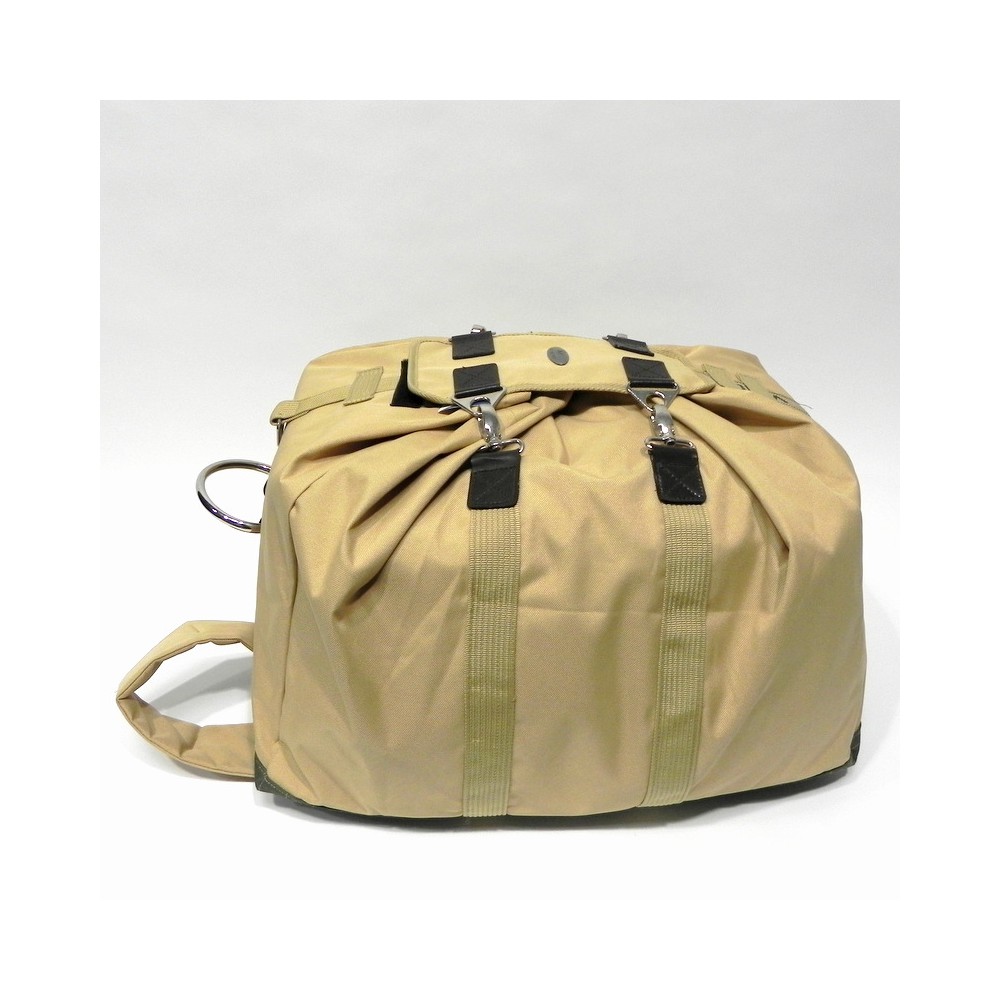 Material: poliéster. Color: marrón.Cierre en la parte superior.Correa ajustable para llevar colgado