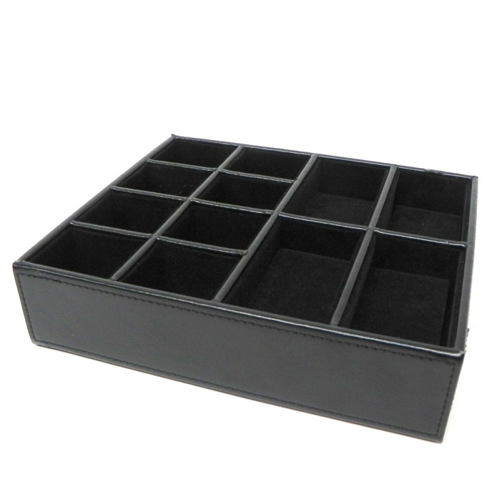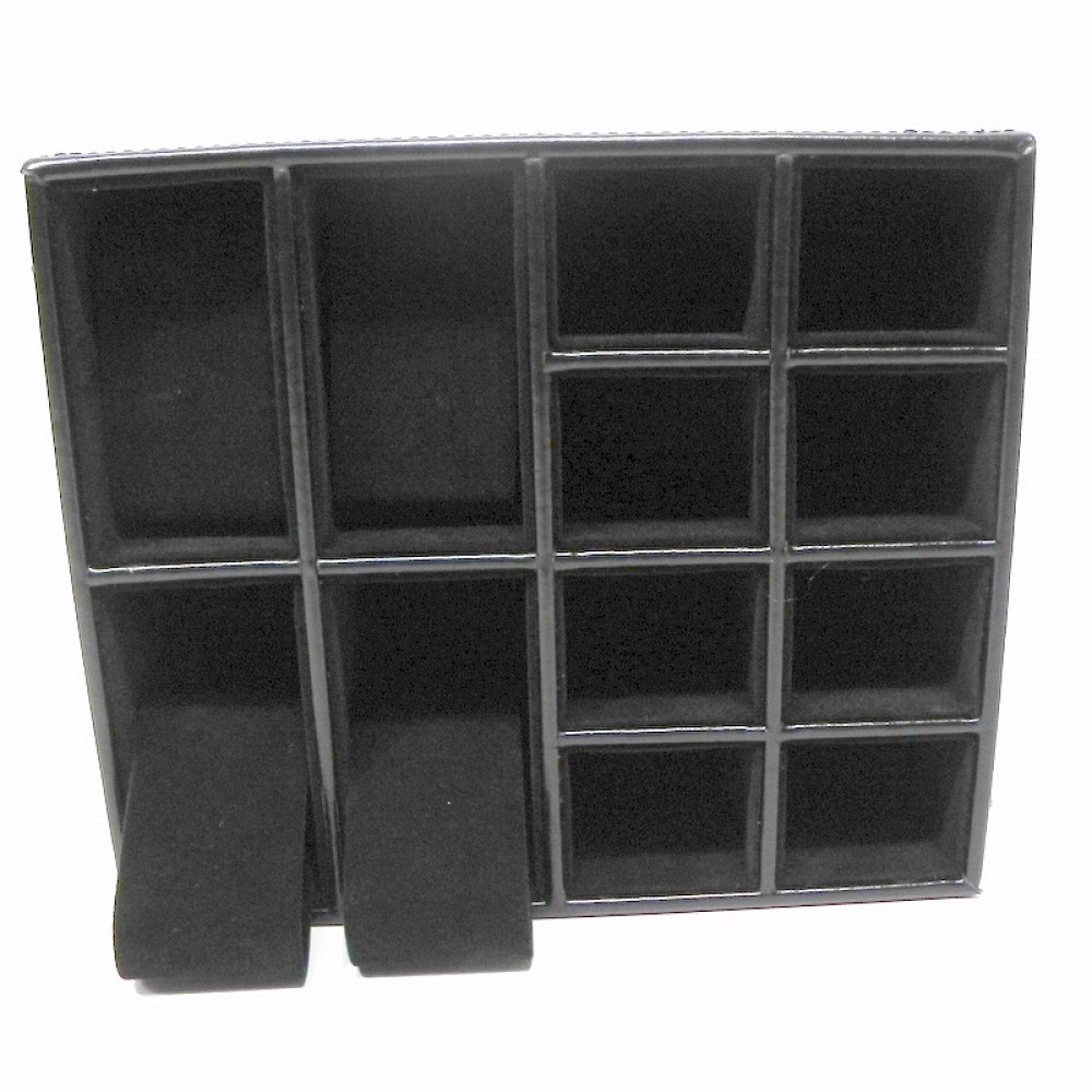 Organizador de relojes y joyas, material símil piel. 4 apartados para relojes y 8 para joyas.